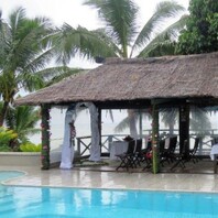 ...or if the weather misbehaves, we have a cantilevered bure available which overlooks the lagoon.